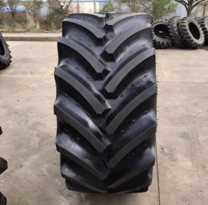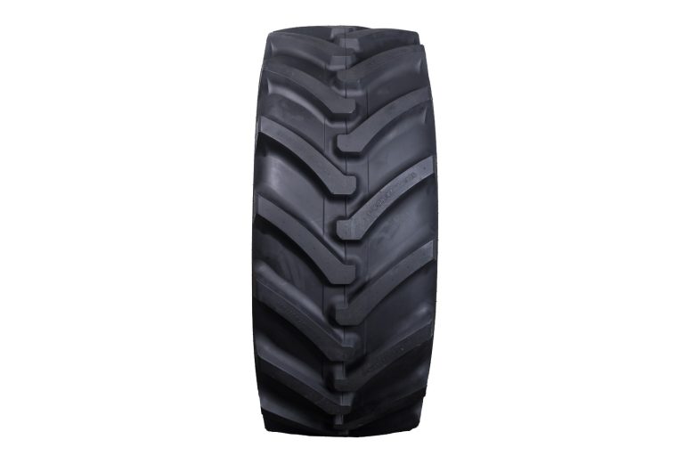 Heavy-duty rear tire for 180-220HP tractors with large implements. Optimized tread design reduces soil compaction in precision farming operations.